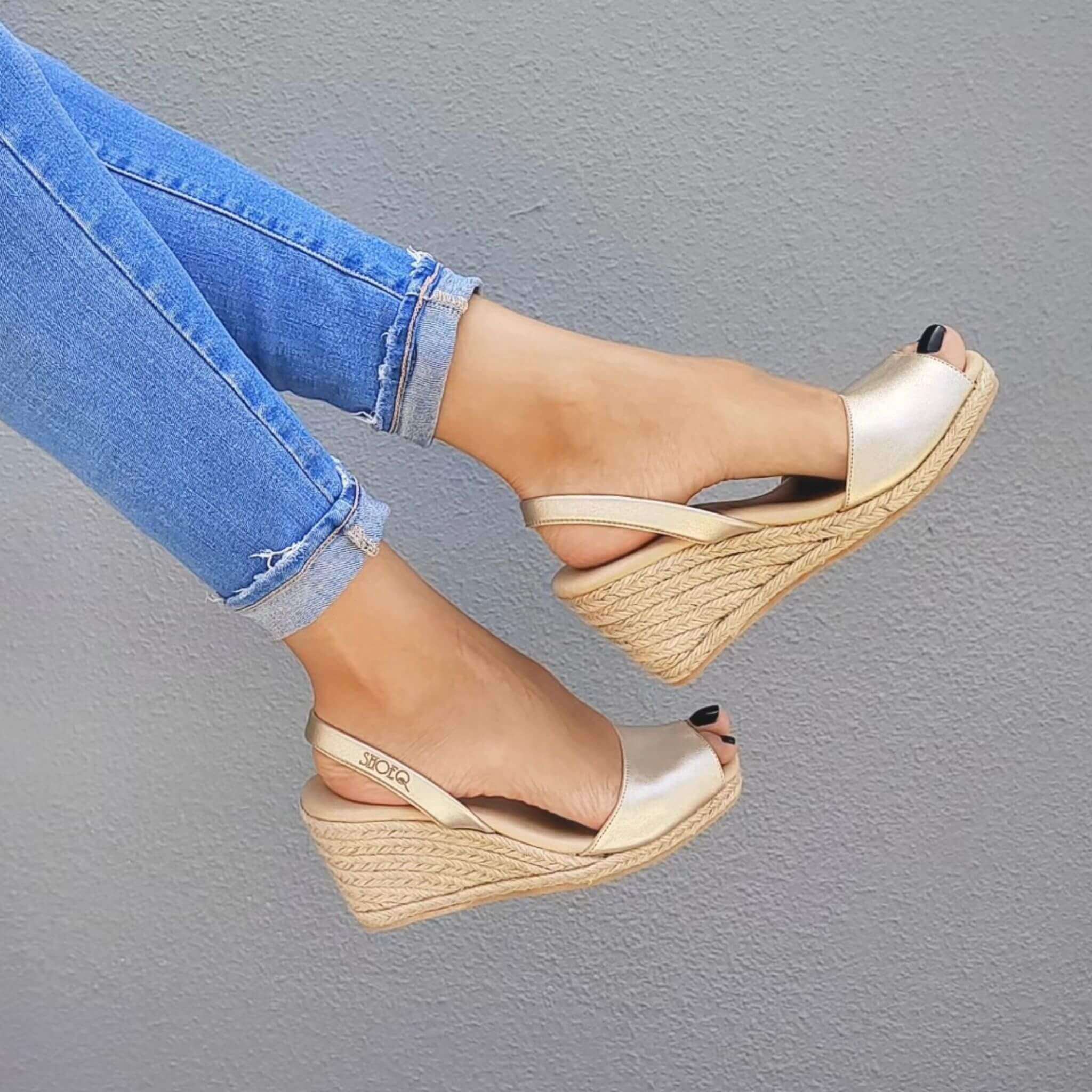 - Tacco tradizionale in corda di iuta da 7 cm per una facile regolazione dell'altezza