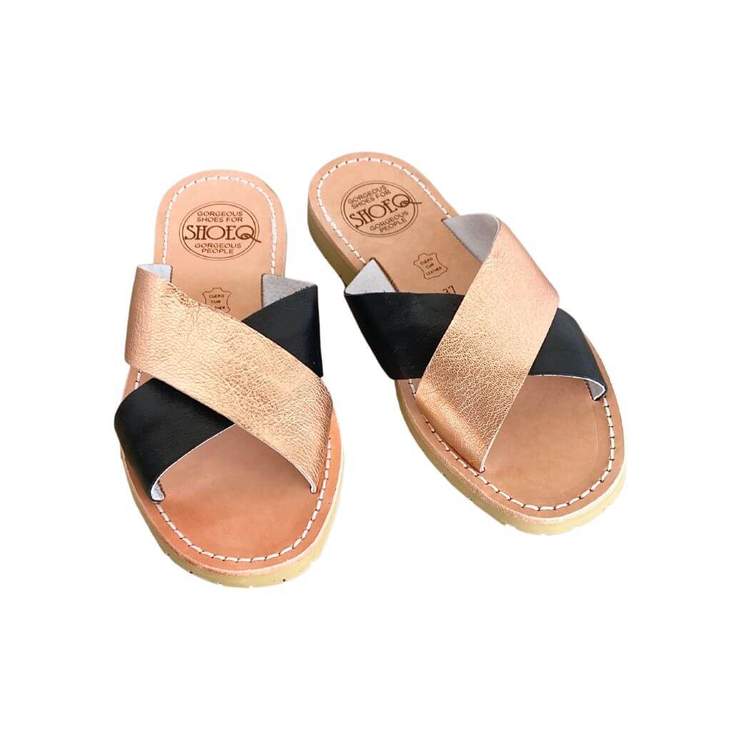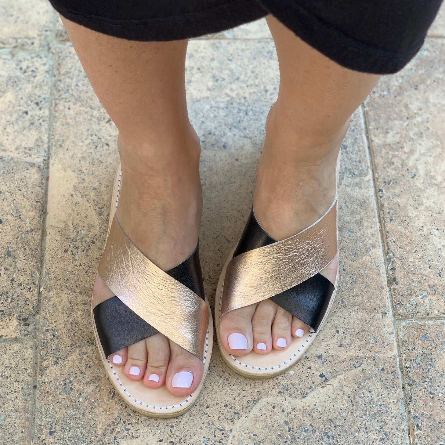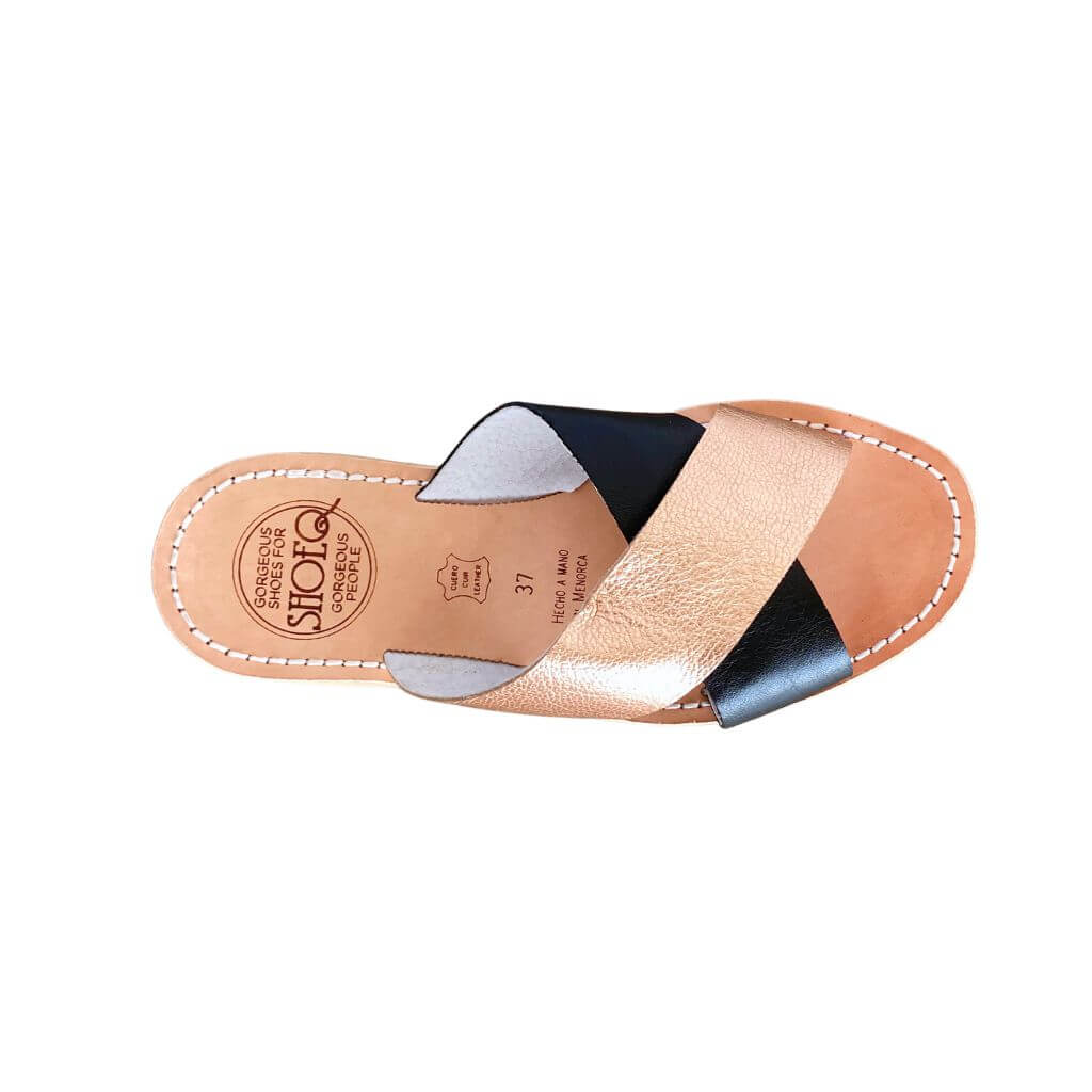 - Sandalo interamente in pelle fatto a mano con due cinturini a contrasto